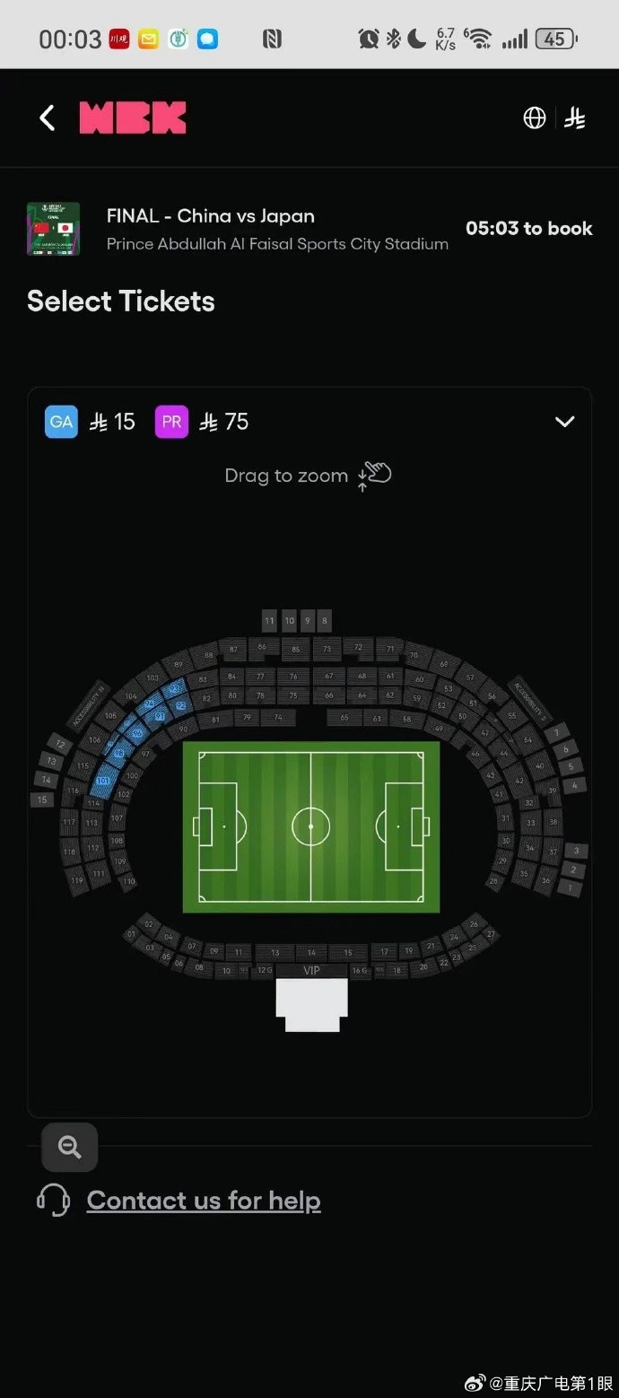 截至发稿时,分配给中国队的东看台北侧仍有部分普通票对外销售,中国国内邮箱和手机号可以直接注册账号购票。